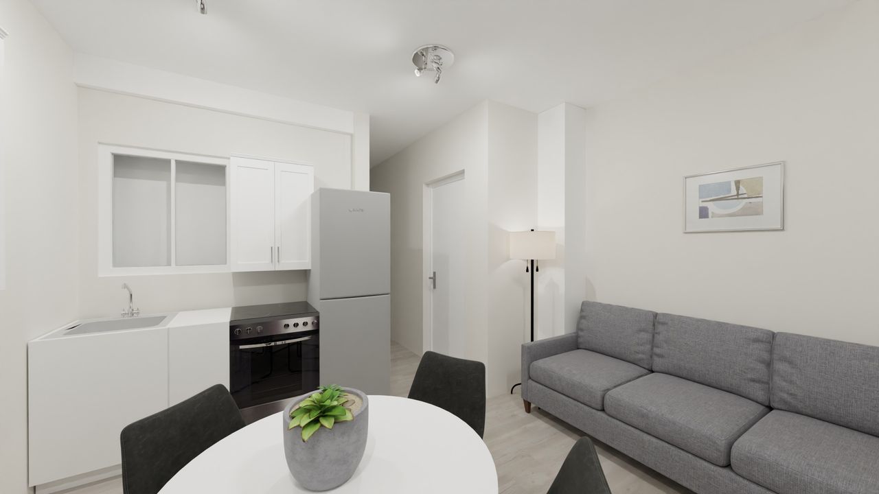- €399/μήνα (€7 / ㎡) ενοίκιο διαμερίσματος, ως ανακαινισμένο βάσει 14 παρόμοιων διαμερισμάτων
